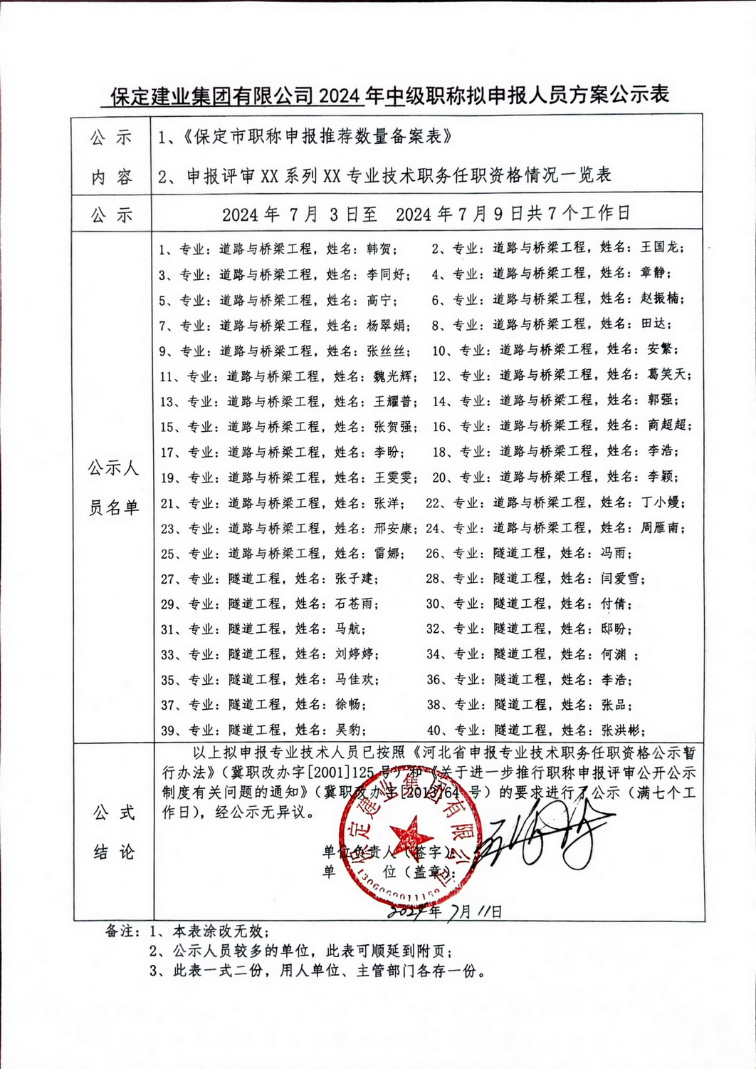 2024年中級職稱擬申報人員方案公示-道路系列