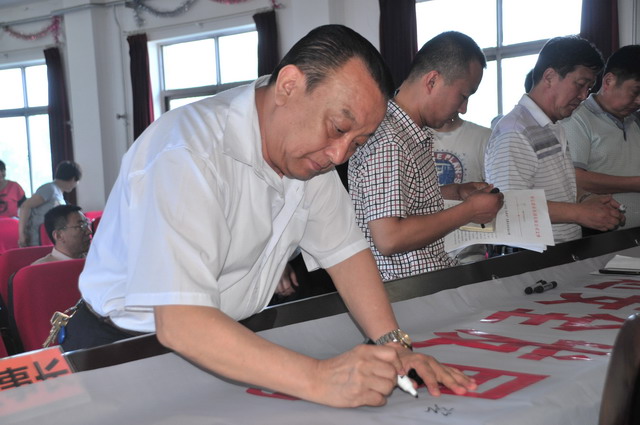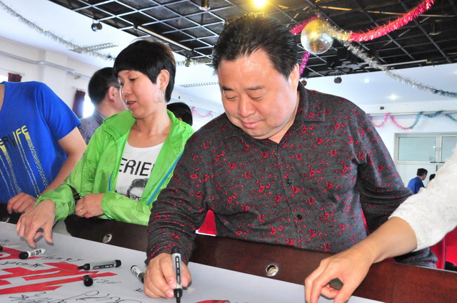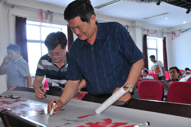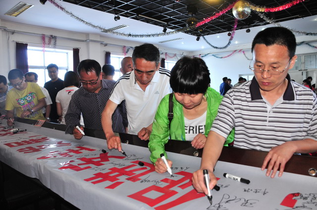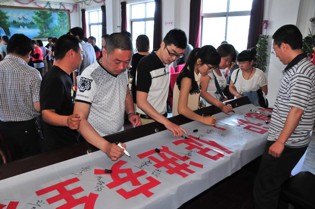 參會人員在“強化紅線意識,促進安全發展,落實安全規章”條幅上簽字。
